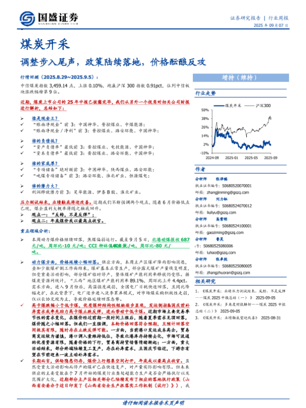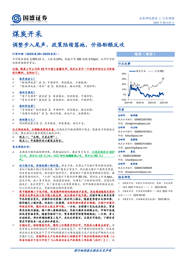 焦煤 动力煤 煤炭开采 行业周报 投资策略