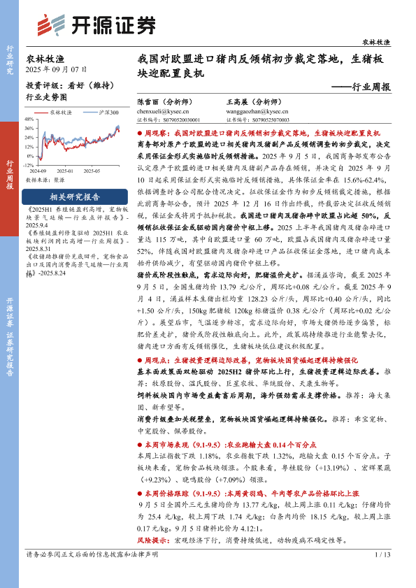 【开源证券】【202509】我国对欧盟进口猪肉反倾销初步裁定落地,生猪板块迎配置良机-13页