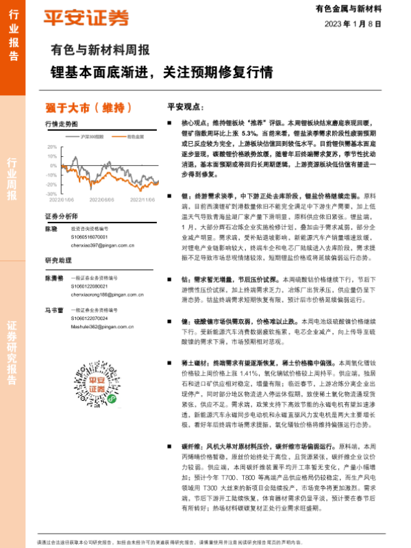 【平安证券】【20230108】有色与新材料周报:锂基本面底渐进,关注预期修复行情-17页