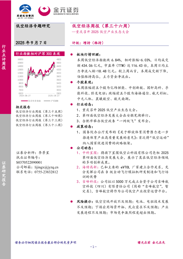 【金元证券】【202509】20250907-金元证券-低空经济周报(第三十六周):重庆召开2025低空产业生态大会.pdf-11页