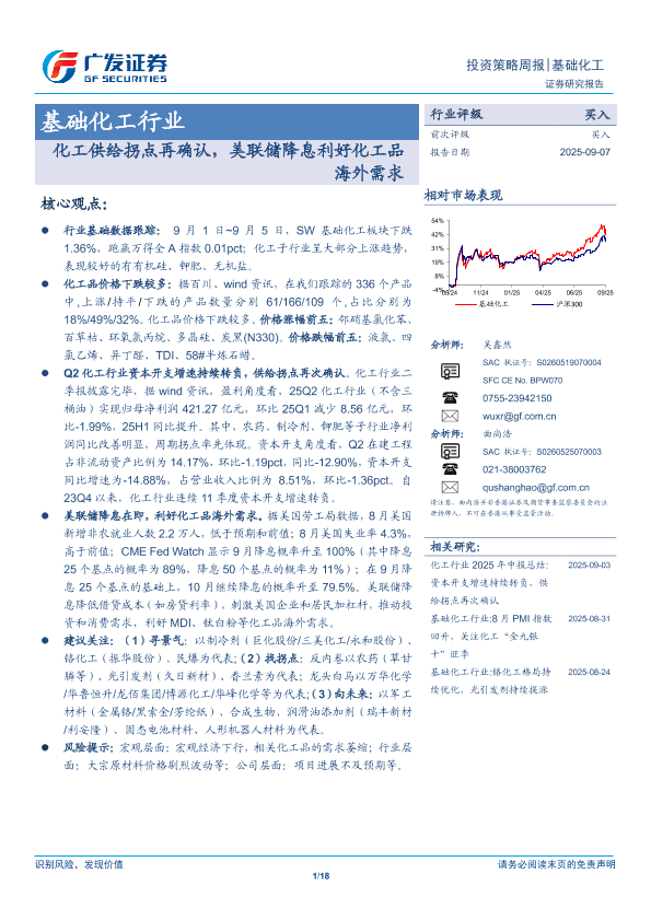 【广发证券】【202509】基础化工行业投资策略周报:化工供给拐点再确认,美联储降息利好化工品海外需求-18页