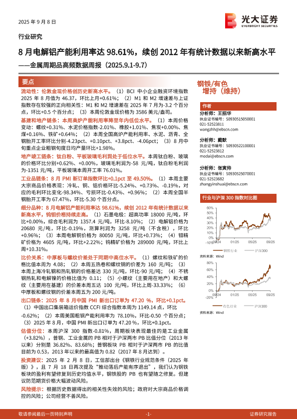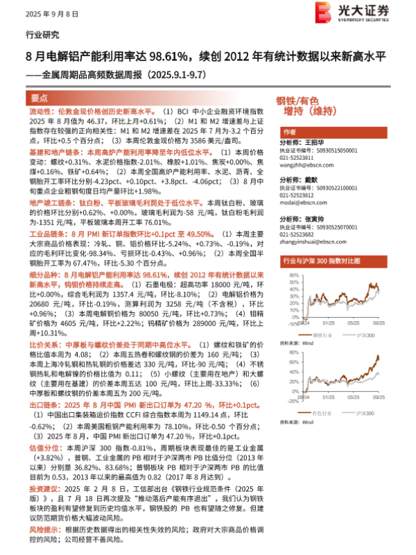 【光大证券】【202509】8月电解铝产能利用率达98.61%,续创2012年有统计数据以来新高水平——金属周期品高频数据周报(2025.9.1-9.7)-26页