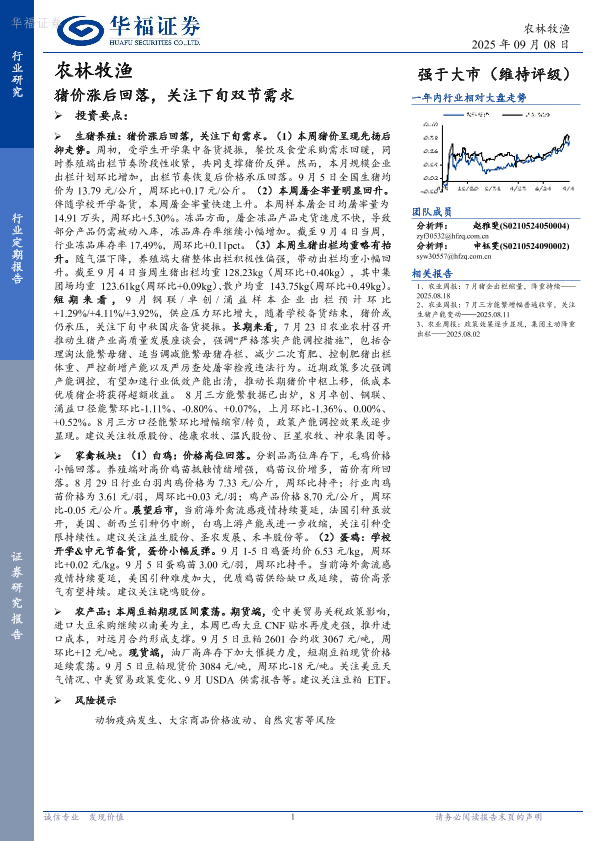 【华福证券】【202509】猪价涨后回落,关注下旬双节需求-11页