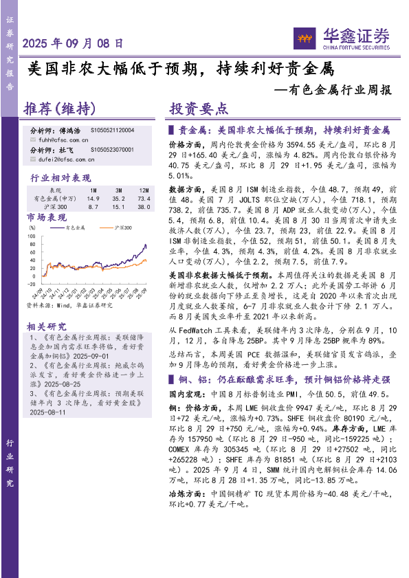 【华鑫证券】【202509】美国非农大幅低于预期,持续利好贵金属-18页