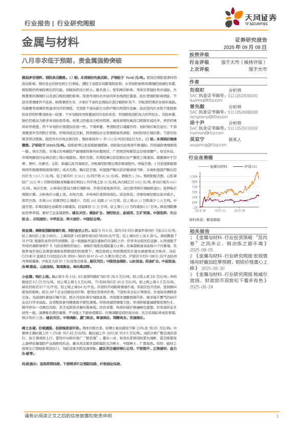 【天风证券】【202509】金属与材料行业研究周报:八月非农低于预期,贵金属强势突破-15页