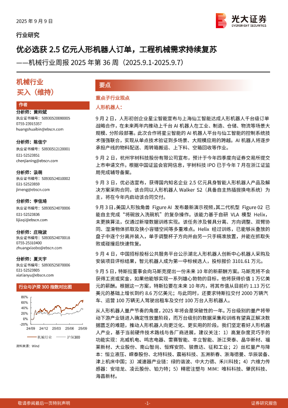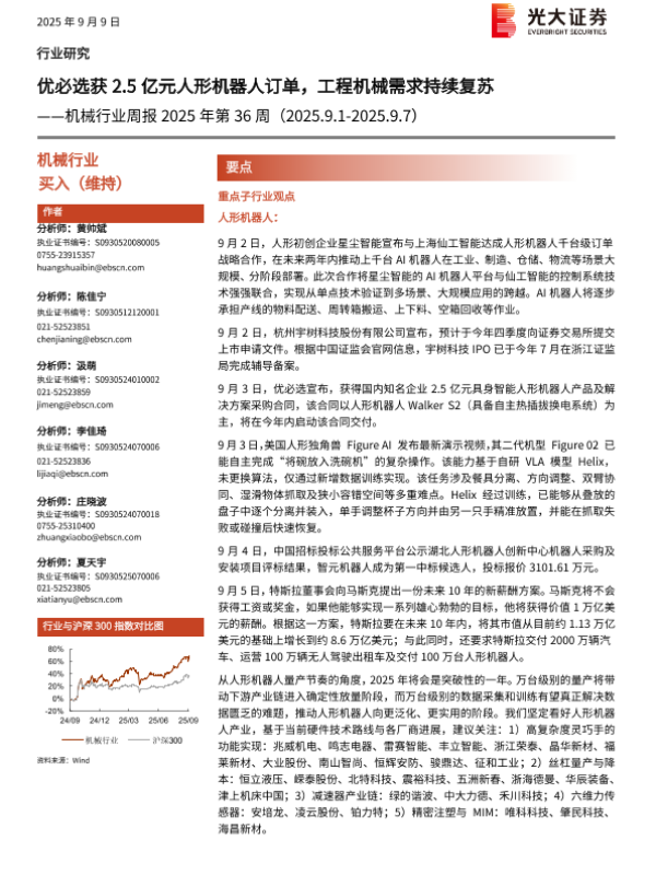 【光大证券】【202509】优必选获2.5亿元人形机器人订单,工程机械需求持续复苏——机械行业周报 2025年第 36周(2025.9.1-2025.9.7)-13页