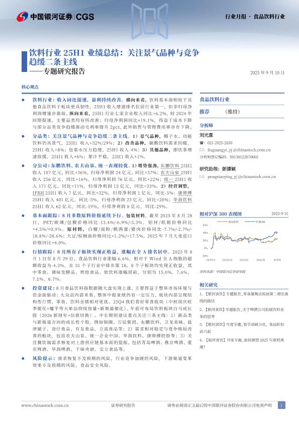 【银河证券】【202509】饮料行业25H1业绩总结:关注景气品种与竞争趋缓二条主线-15页