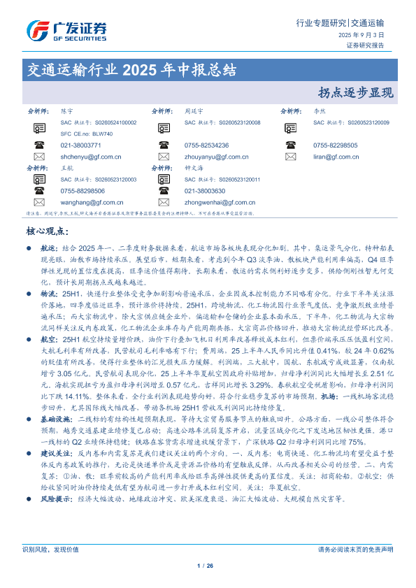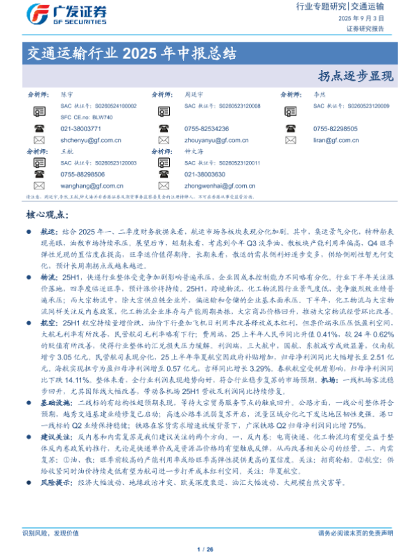 【广发证券】【202509】交[Table_通]运输行业 2025年中报总结-26页