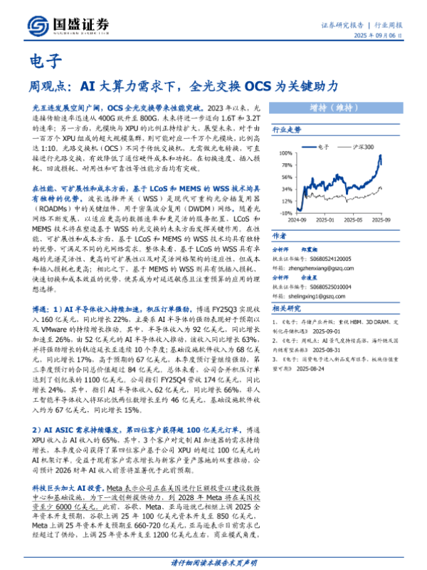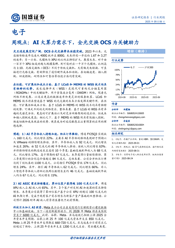 【国盛证券】【202509】电子周观点:AI大算力需求下,全光交换 OCS为关键助力-17页
