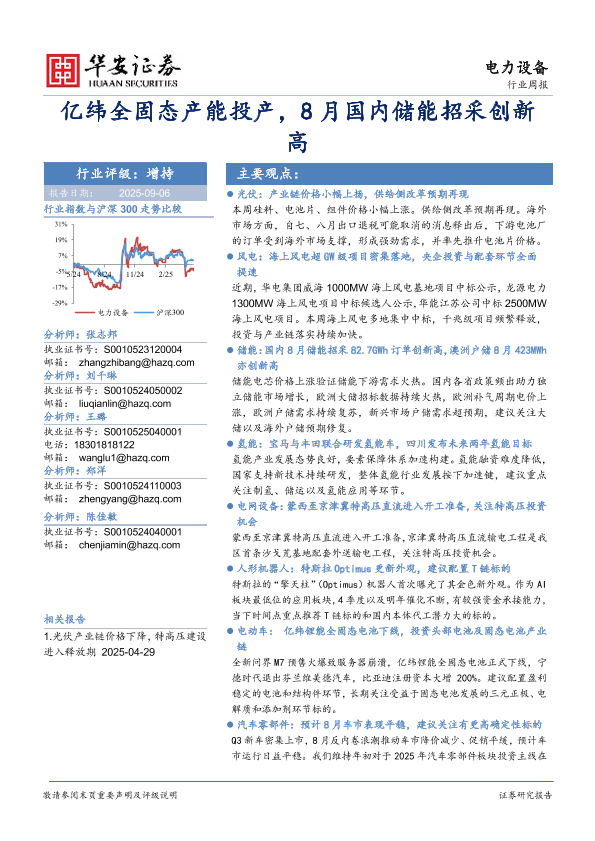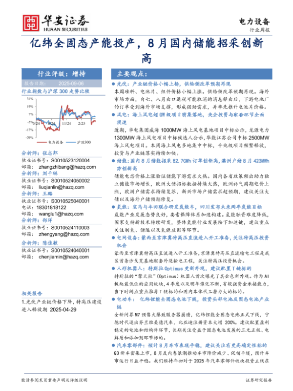 【华安证券】【202509】亿纬全固态产能投产,8月国内储能招采创新高-20页