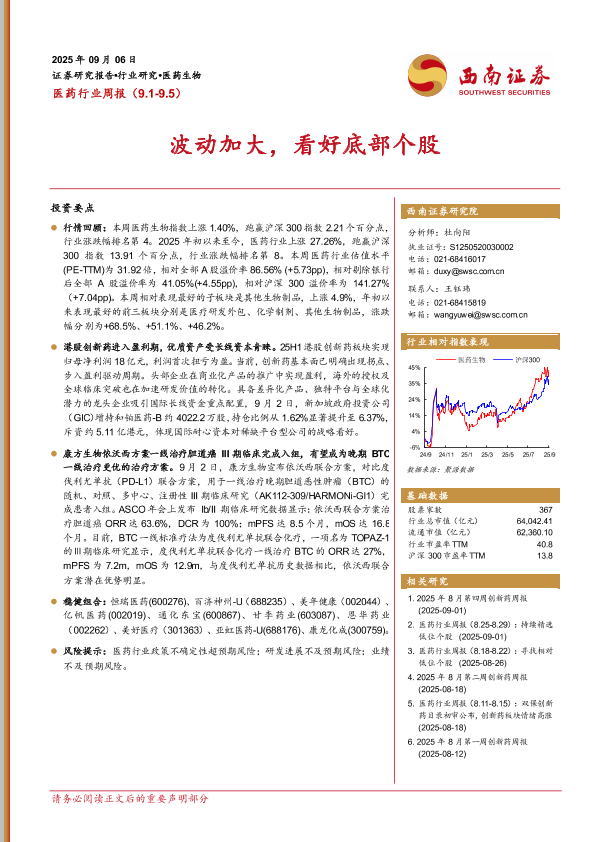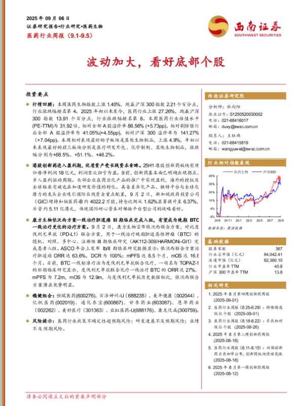 【西南证券】【202509】医药行业周报(9.1-9.5)波动加大,看好底部个股-34页
