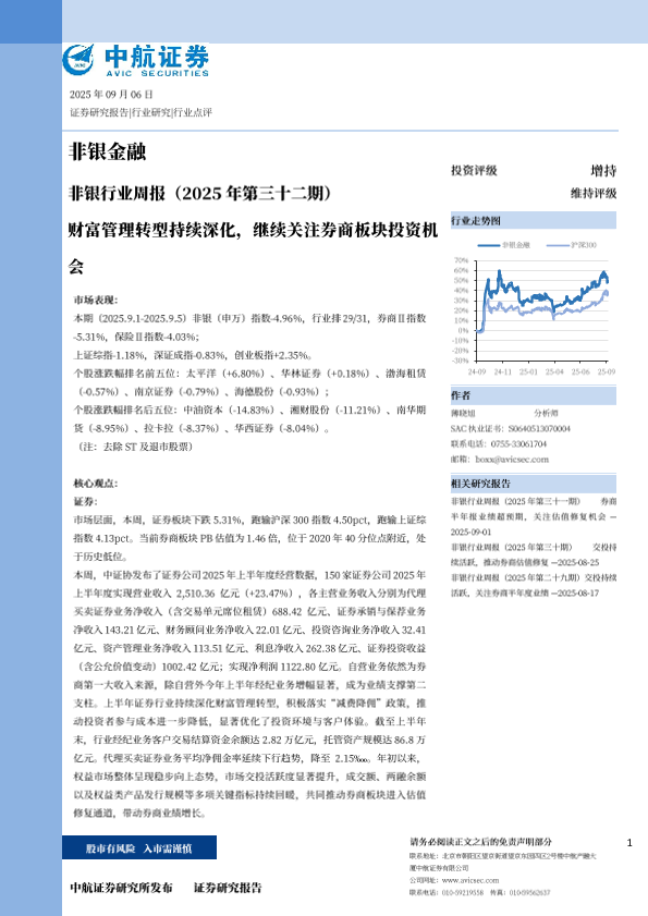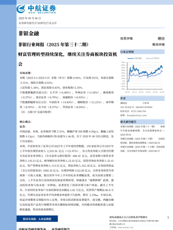 【中航证券】【202509】非银行业周报(2025年第三十二期):财富管理转型持续深化,继续关注券商板块投资机会-11页