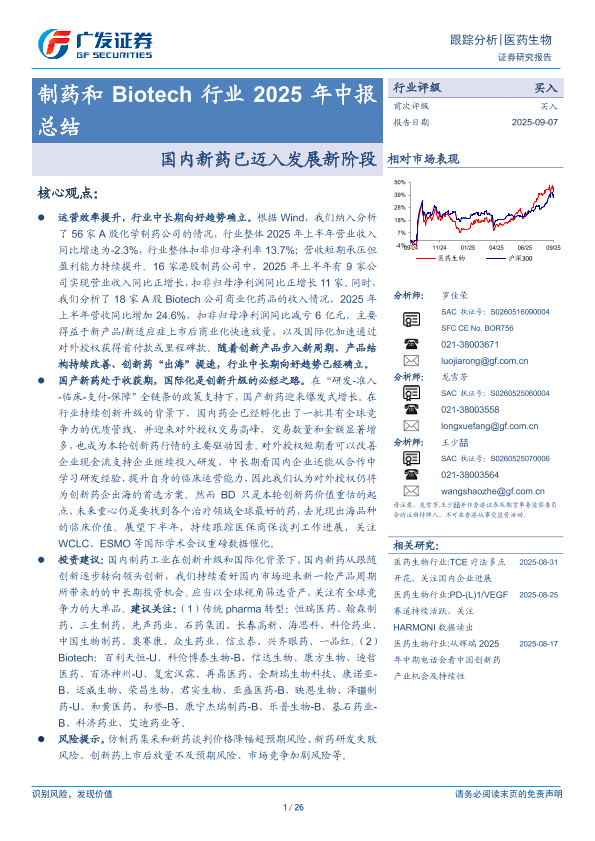 【广发证券】【202509】制药和Biotech行业2025年中报总结:国内新药已迈入发展新阶段-26页