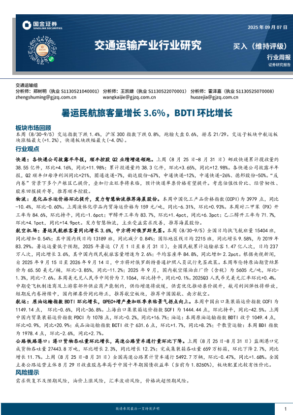 【国金证券】【202509】交通运输产业行业研究:暑运民航旅客量增长3.6%,BDTI环比增长-17页
