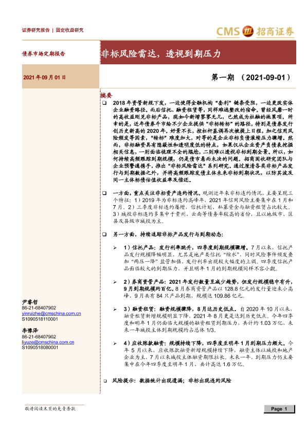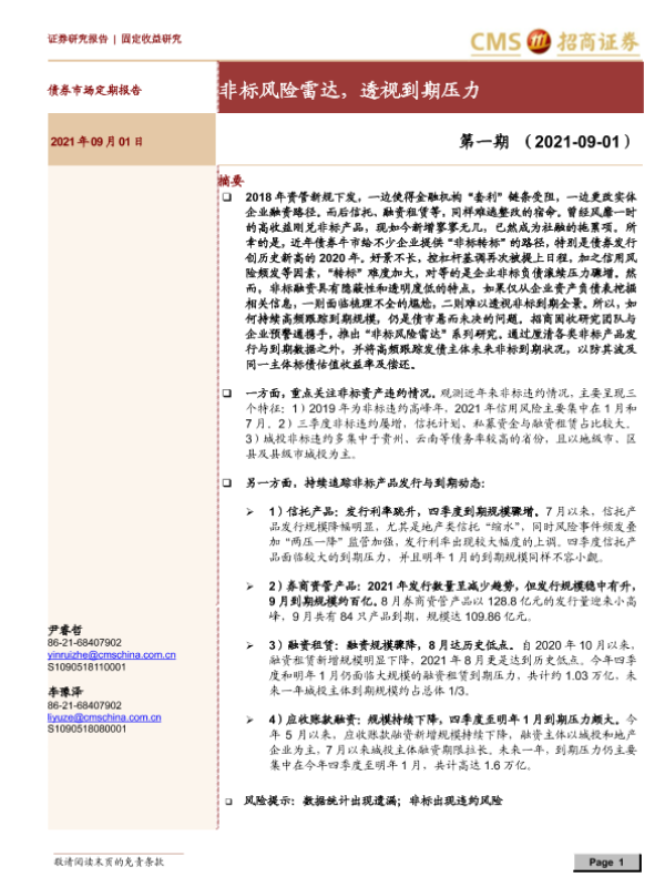 【海通证券】【20210901】债券市场定期报告第一期:非标风险雷达,透视到期压力-16页