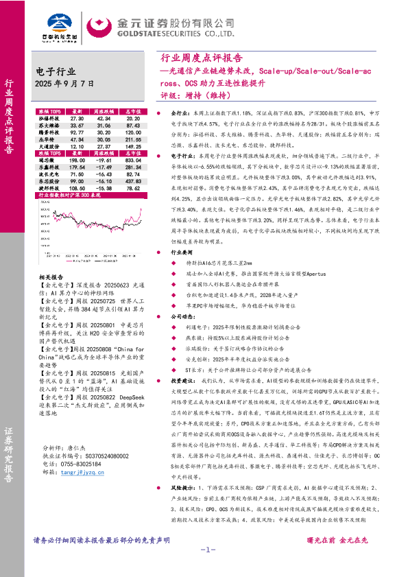 【金元证券】【202509】光通信产业链趋势未改,Scale-up Scale-out Scale-across、OCS助力互连性能提升-28页
