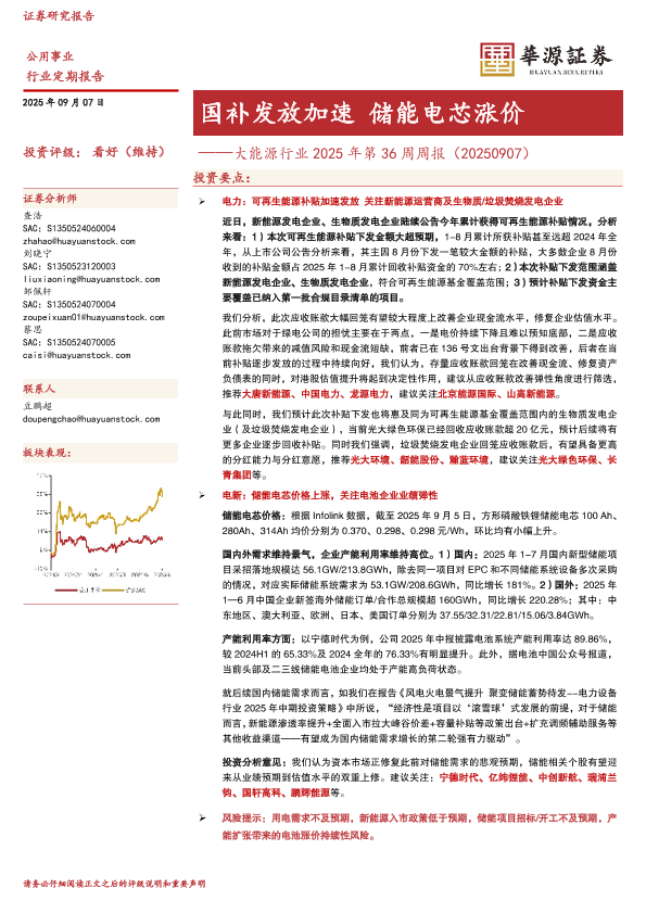 【华源证券】【202509】国补发放加速储能电芯涨价——大能源行业 2025年第 36周周报(20250907)-12页
