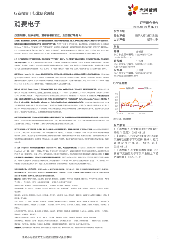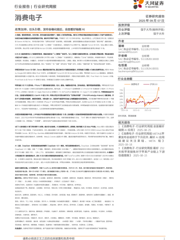【天风证券】【202509】消费电子-行业研究周报 全面看好 端侧 AI应用-15页