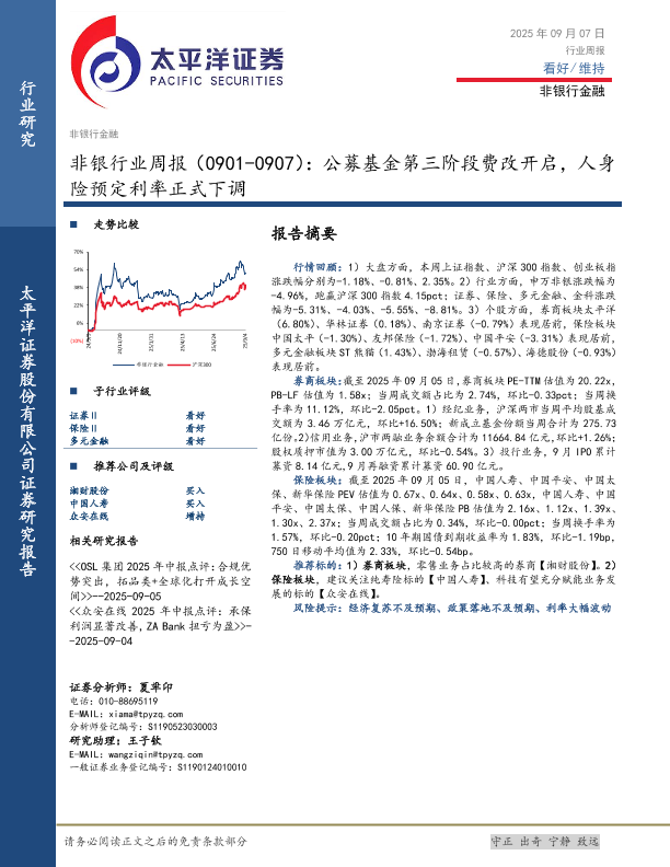 【太平洋证券】【202509】非银行业周报:公募基金第三阶段费改开启,人身险预定利率正式下调-11页