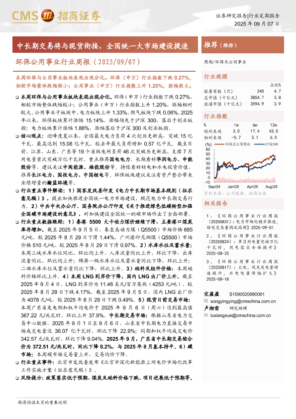 环保 电力市场 碳市场 行业周报 公用事业