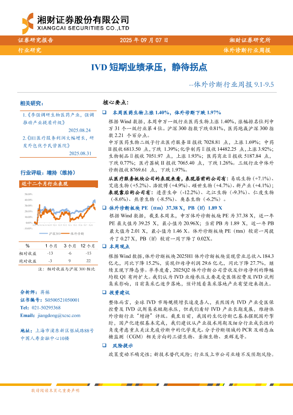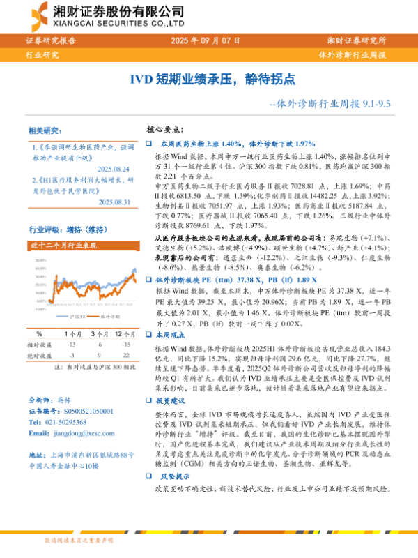 【湘财证券】【202509】体外诊断行业周报 9.1-9.5-10页