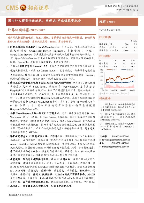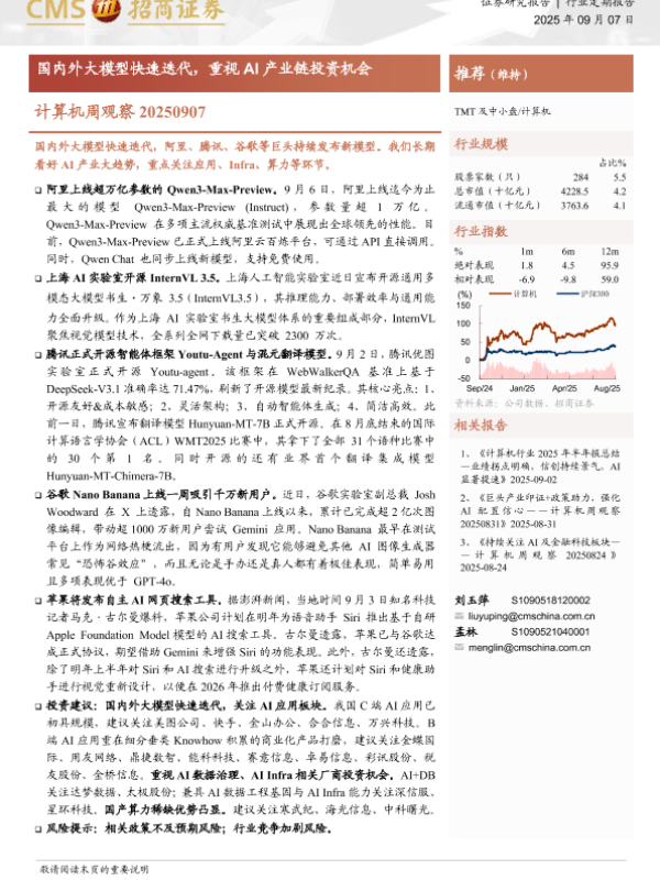 【海通证券】【202509】计算机周观察:国内外大模型快速迭代,重视AI产业链投资机会-10页