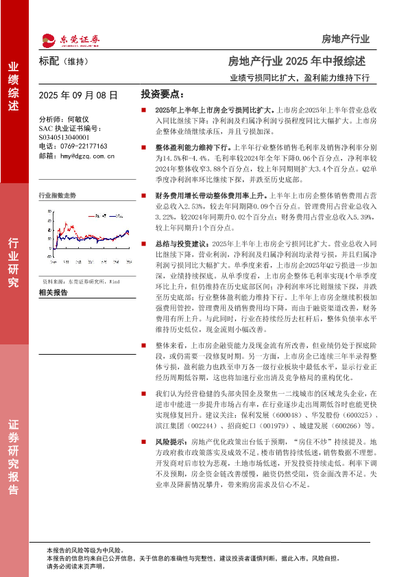 【东莞证券】【202509】房地产行业2025年中报综述:业绩亏损同比扩大,盈利能力维持下行-10页