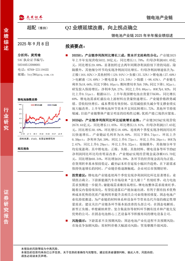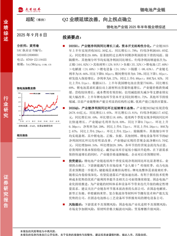 【东莞证券】【202509】锂电池产业链2025年半年报业绩综述:Q2业绩延续改善,向上拐点确立-19页