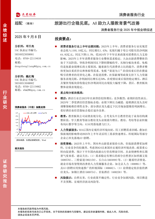 【东莞证券】【202509】消费者服务行业2025年中报业绩综述:旅游出行企稳见底,AI助力人服教育景气改善-17页
