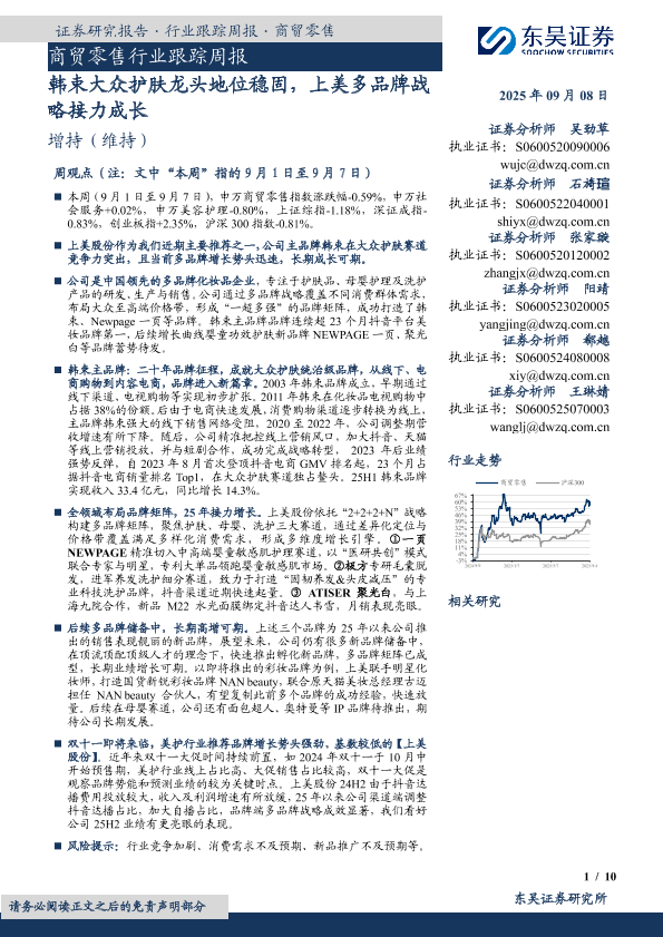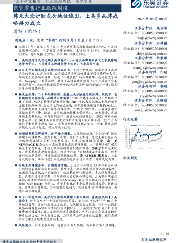 【东吴证券】【202509】韩束大众护肤龙头地位稳固,上美多品牌战略接力成长-10页