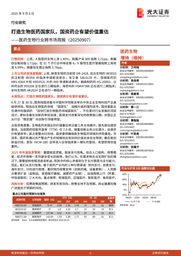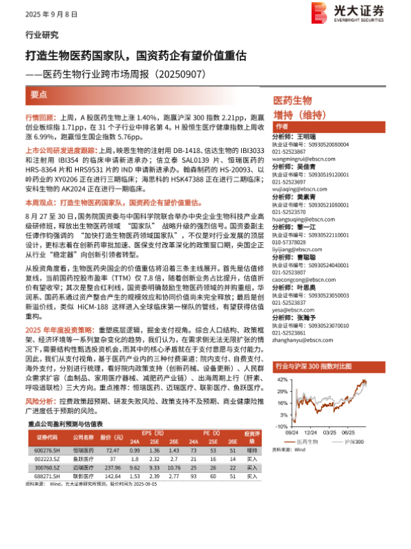 【光大证券】【202509】打造生物医药国家队,国资药企有望价值重估——医药生物行业跨市场周报(20250907)-15页