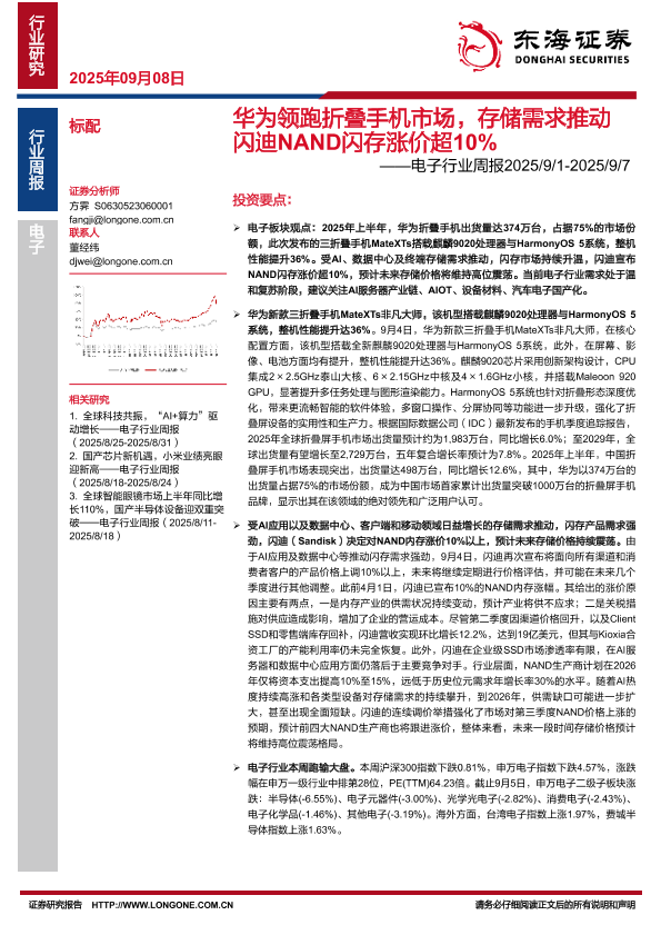 【东海证券】【202509】华为领跑折叠手机市场,存储需求推动闪迪NAND闪存涨价超10%-14页