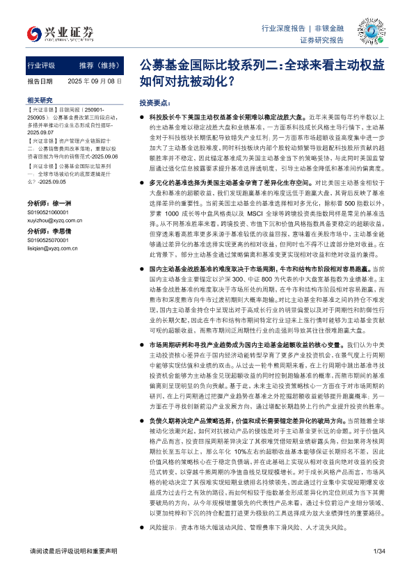 【兴业证券】【202509】公募基金国际比较系列二:全球来看主动权益如何对抗被动化?-34页