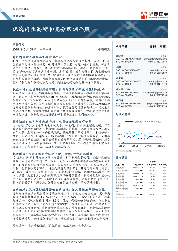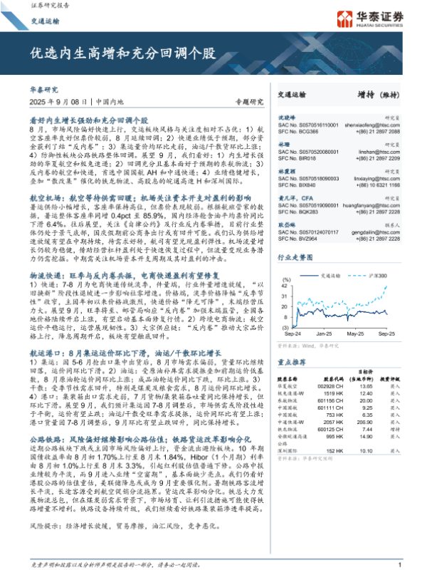 【华泰证券】【202509】交通运输专题研究:优选内生高增和充分回调个股-26页