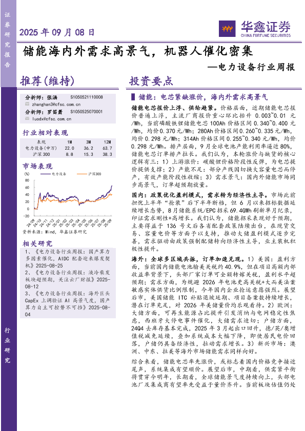 【华鑫证券】【202509】储能海内外需求高景气,机器人催化密集-17页