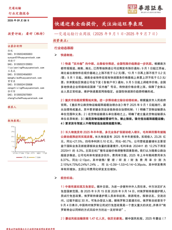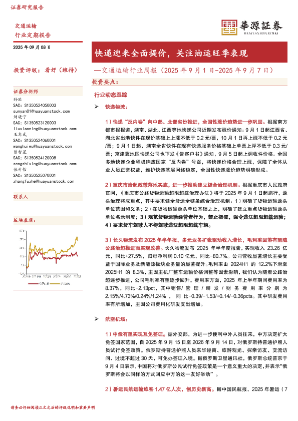 【华源证券】【202509】交通运输行业周报(2025年 9月 1日-2025年 9月 7日)-16页