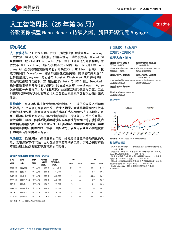 【国信证券】【202509】互联网行业人工智能周报(25年第36周):谷歌图像模型Nano Banana持续火爆,腾讯开源混元Voyager-11页