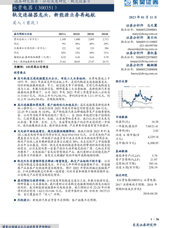 【东吴证券】【20230111】永贵电器(300351)轨交连接器龙头,新能源业务再起航-36页