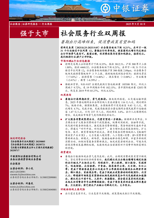 【中银证券】【202509】社会服务行业双周报 2025年 9月 10日-15页