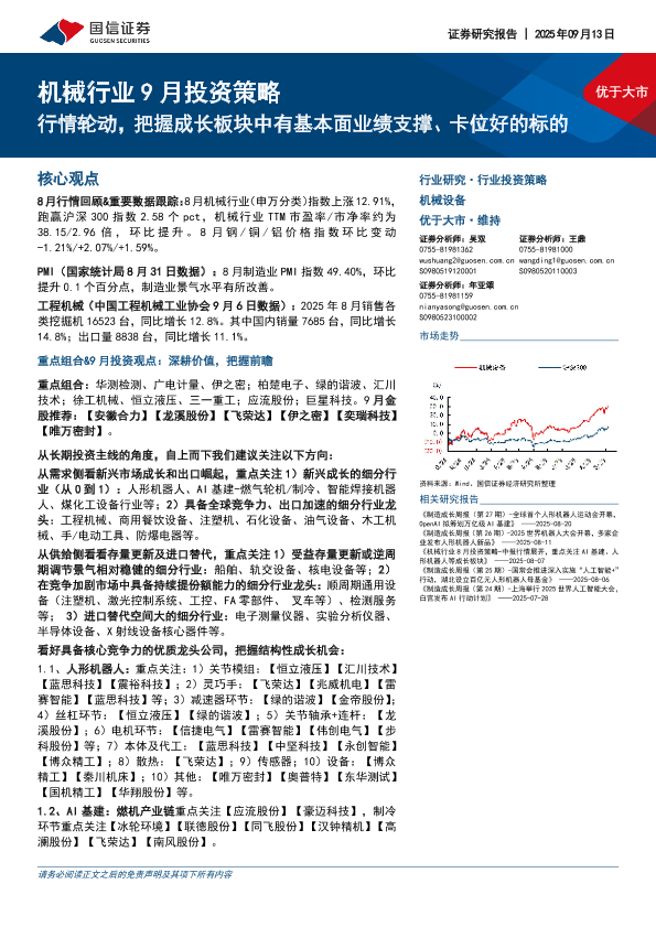 【国信证券】【202509】优于大市 机械行业 9月投资策略-24页