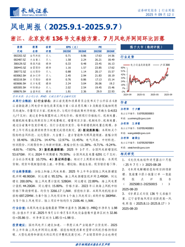 【长城证券】【202509】风电周报(2025.9.1-2025.9.7)-13页