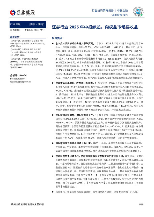 【兴业证券】【202509】证券行业2025年中报综述:向权益市场要收益-36页