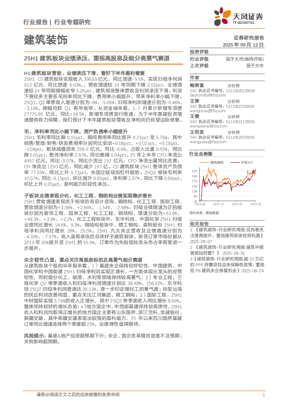 【天风证券】【202509】25H1建筑板块业绩承压,重视高股息及细分高景气赛道-26页