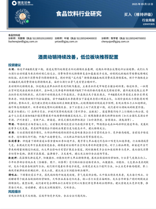 【国金证券】【202509】食品饮料行业周报:酒类动销持续改善,低位板块推荐配置-10页