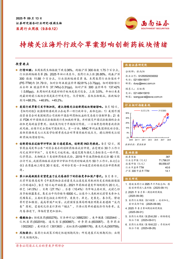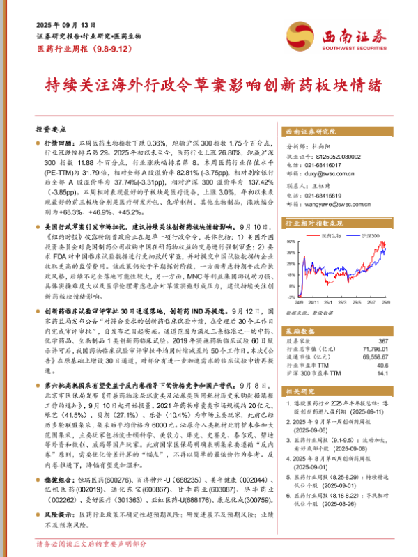 【西南证券】【202509】医药行业周报(9.8-9.12)-32页