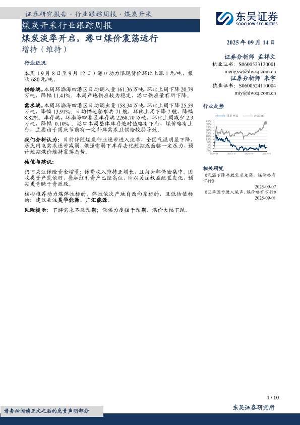 【东吴证券】【202509】煤炭开采行业跟踪周报·煤炭淡季开启,港口煤价震荡运行-10页