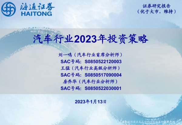 【海通证券】【20230113】汽车行业2023年投资策略-23页