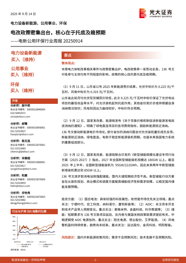 【光大证券】【202509】电改政策密集出台,核心在于托底及稳预期——电新公用环保行业周报 20250914-11页