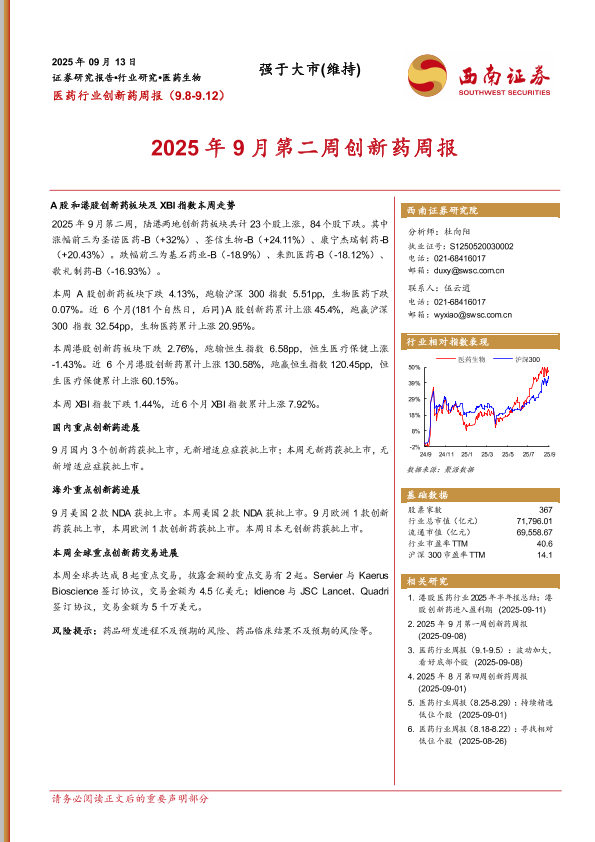【西南证券】【202509】医药行业创新药周报(9.8-9.12)-14页