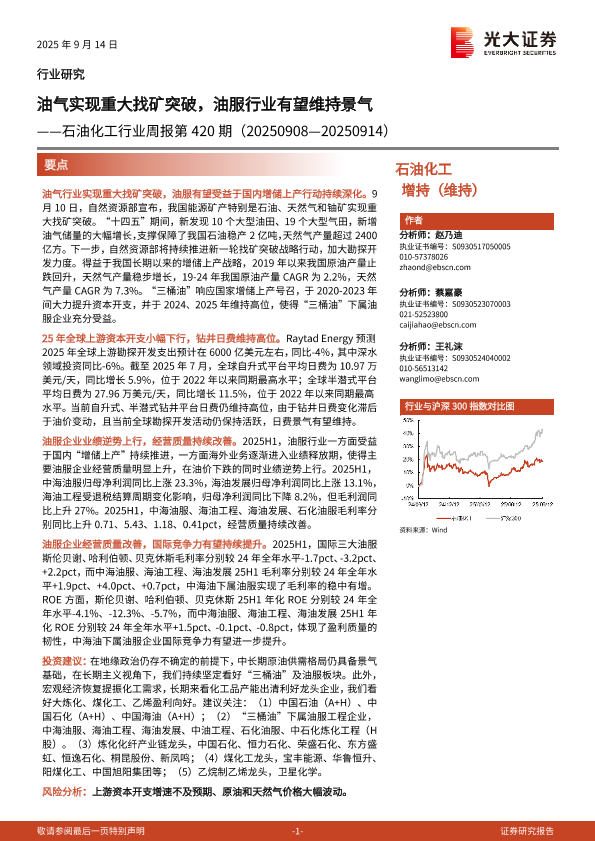 【光大证券】【202509】油气实现重大找矿突破,油服行业有望维持景气-15页